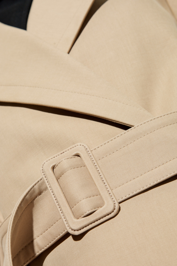 Introducing the Beige Belted Trench Coat from the exclusive collection of the renowned designer, Dries Van Noten. This trench coat epitomizes timeless elegance and sophisticated style. Crafted with a classic, knee-length silhouette, the coat features a tailored fit with a belted waist that accentuates the figure. The wide collar with notched lapels adds a touch of refinement, while the smooth, high-quality fabric—comprising 97% cotton and 3% elastane—ensures both comfort and durability. In a solid beige hue, this trench coat exudes minimalist elegance. The double-breasted front with two rows of buttons and adjustable cuff buttons further highlights its classic design. Practicality is not overlooked, with two side pockets offering convenience. Inside, the designer's label near the collar signifies the coat's exclusivity. This piece is not only water-resistant but also a versatile addition to any wardrobe, making it perfect for various occasions. Why Choose This Product? Exclusive Design by Dries Van Noten High-Quality Material for Comfort and Durability Timeless Elegance with a Classic Silhouette Functional Features including Adjustable Cuffs and Side Pockets Minimalist and Versatile, Perfect for Various Occasions