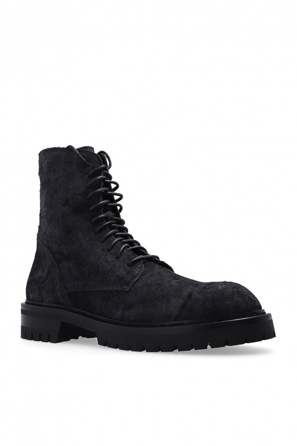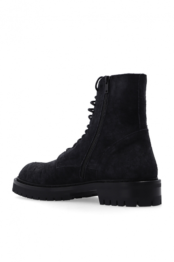 Dark grey ‘Alec’ ankle boots from Ann Demeulemeester. Made of suede, this lace-up model features a side zip closure, a vintage treatment and a black rubber sole.