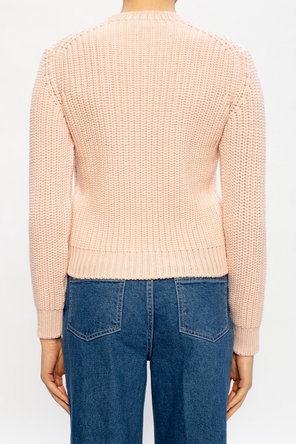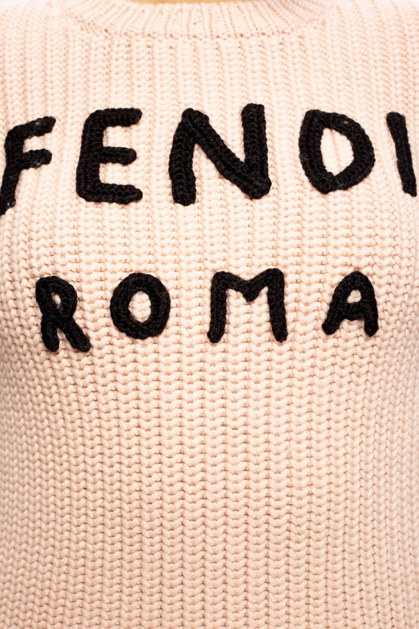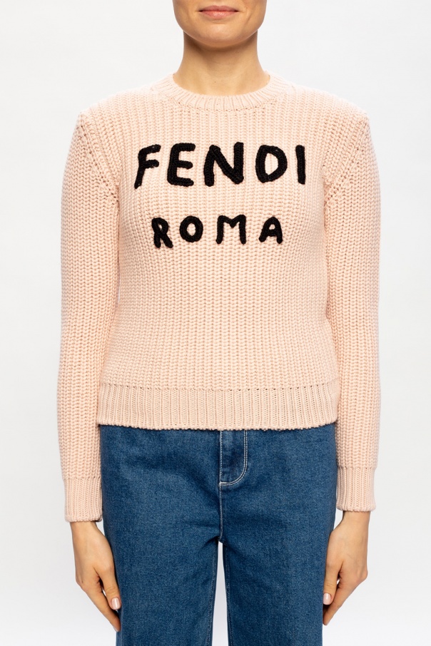 Pink sweater from Fendi. Crafted from wool in a rib-knit design, this jumper is complete with an elasticated bottom hem and cuffs and the brand's lettering stitched in black across the front.