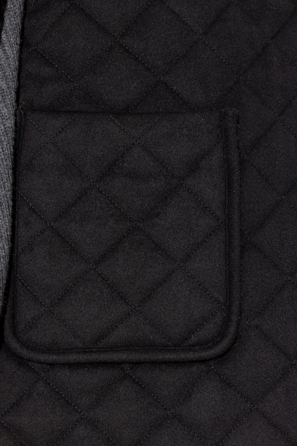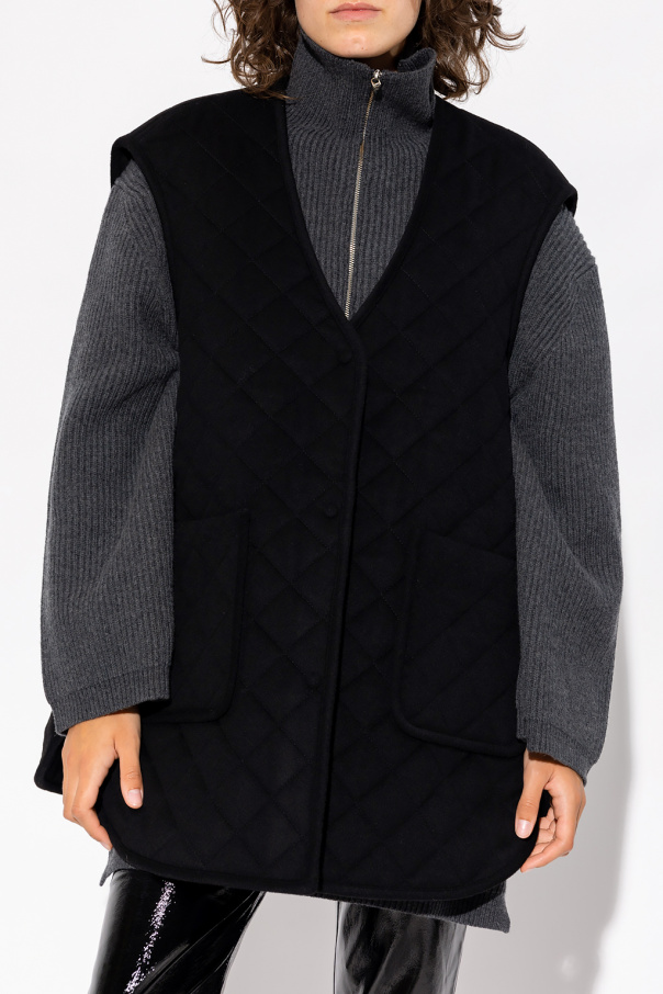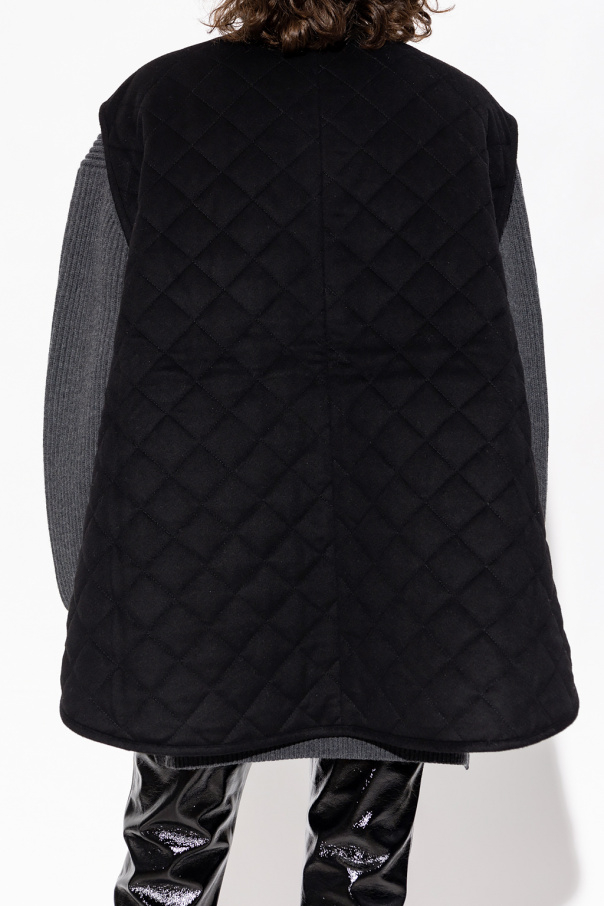Black quilted vest from Toteme. Crafted from wool, this style features an oversize silhouette, snap closures, two slip pockets and side slits.