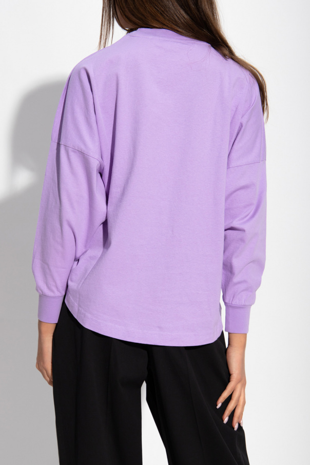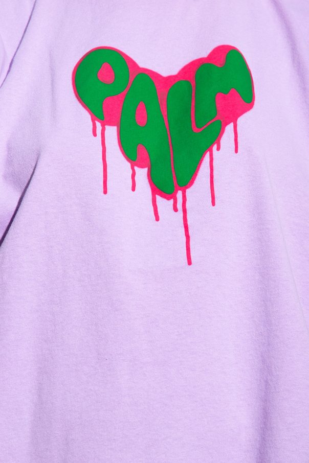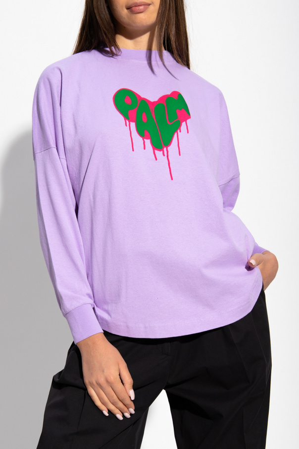 Purple T-shirt from Palm Angels. Crafted from cotton, this long sleeve design features a green and pink print as well as ribbed trims at the crewneck and cuffs