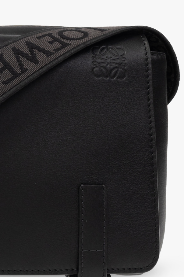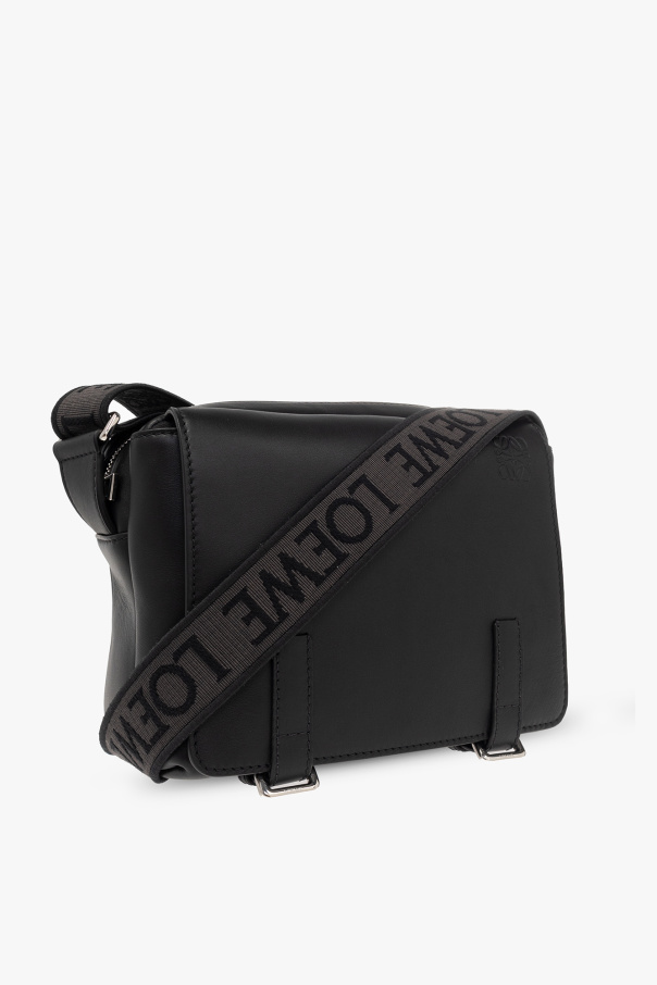Black ‘Military Messenger XS’ shoulder bag from Loewe. Crafted from leather, this design secures with a zipper and features a flapped front pocket with buckles, branded shoulder strap, silver-tone metal hardware and one internal compartment with a slip pocket.
