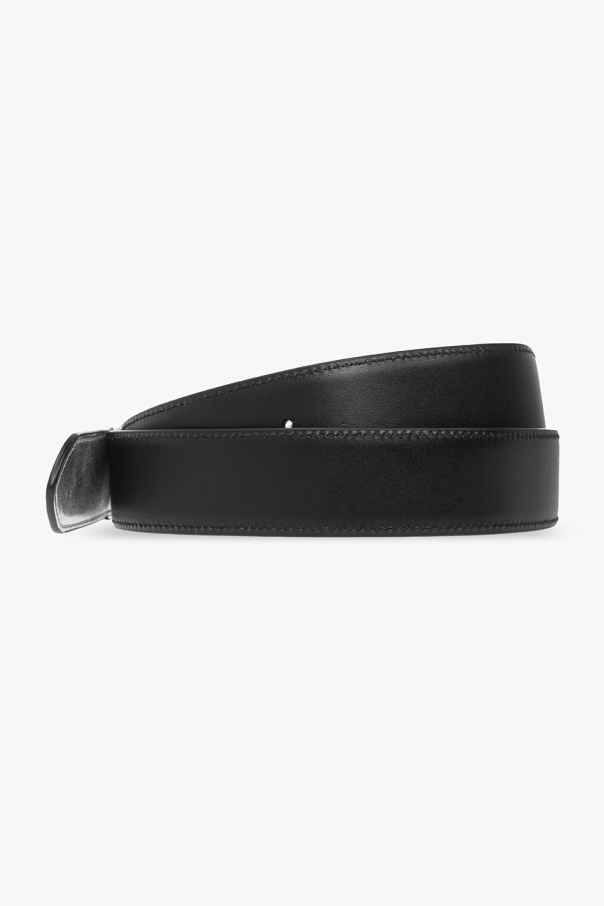 Silver-tone and black reversible belt from Maison Margiela. Crafted from calf leather, this item fastens with a silver-tone brass buckle with an engraved logo in white.
