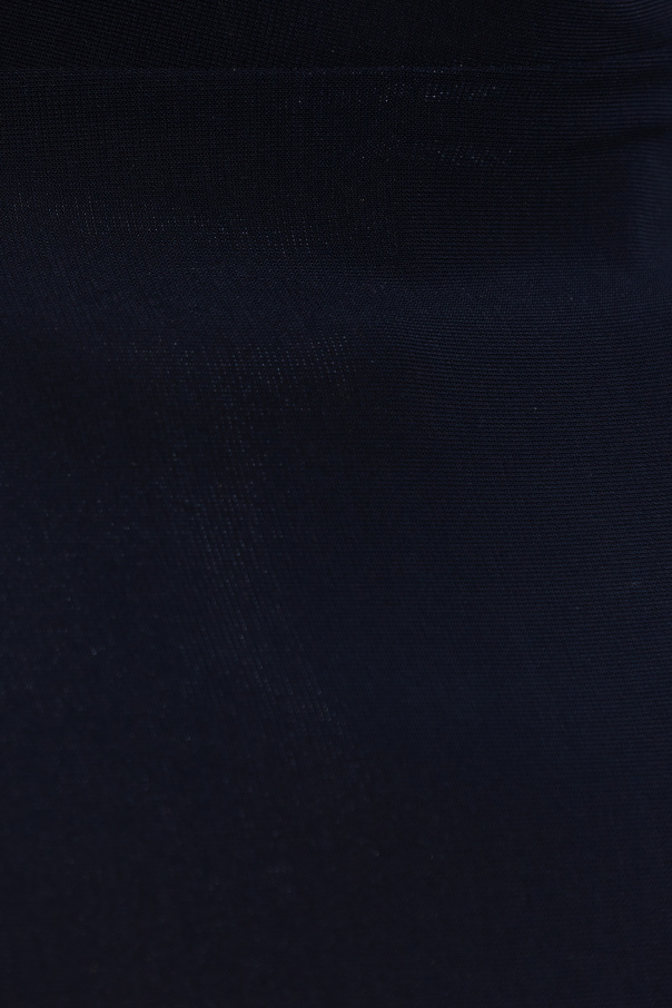 Navy turtleneck body from Alaia. Made from sheer fabric, this long sleeve design features a concealed back zip and snap fastenings.