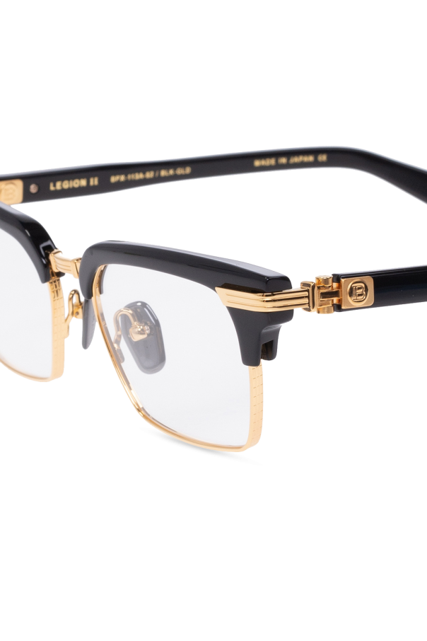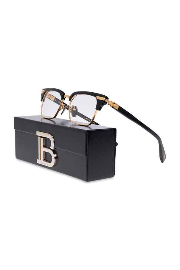 Black and gold-tone optical glasses from Balmain. Crafted from titanium and acetate, this model features raised branding on the temples.