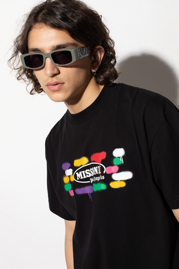 Green sunglasses from Palm Angels. Emblazoned with a tactile logo in silver-tone, this pair comes with a case and features certified black lenses with UVA/UVB protection.