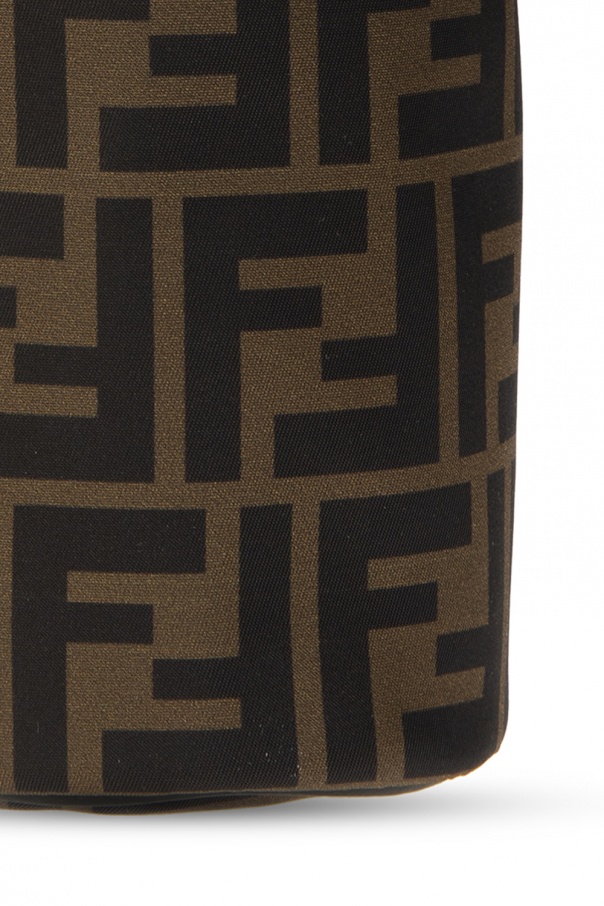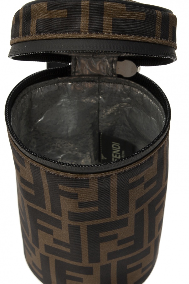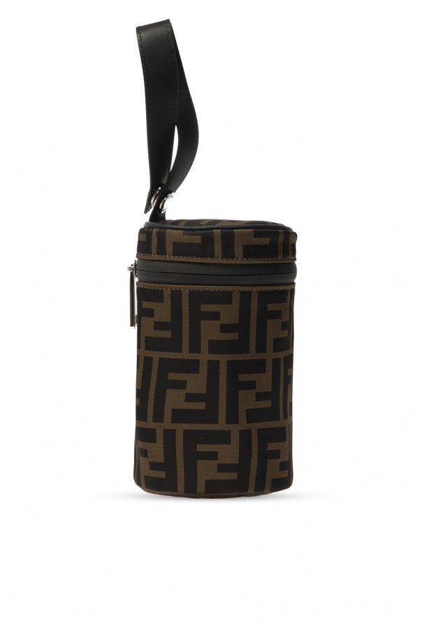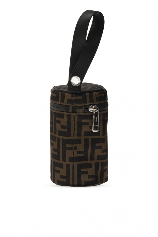 Brown bottle holder from Fendi Kids. Offering thermal qualities, this item comes printed with FF motif and equipped with zip fastening and leather strap which fastens via silver-tone snap-button.