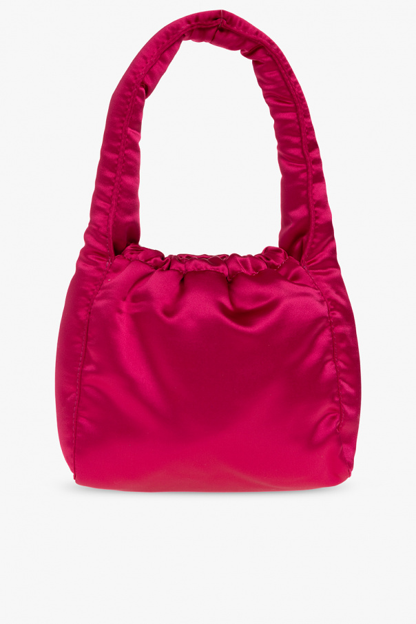 Pink ‘Lamis Small’ handbag from Samsoe Samsoe. Made of recycled fabric with a satin finish, this design features drawstrings, half-round handle, silver-tone metal hardware and one internal compartment with one zip pocket.
