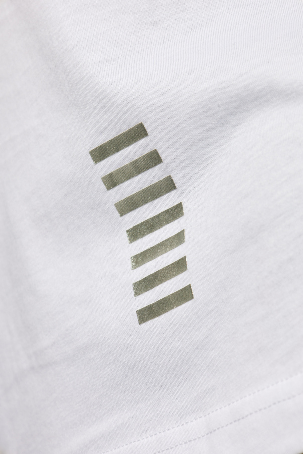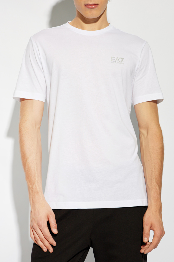 Introducing the epitome of refined casual wear: the EA7 Emporio Armani Logo T-shirt. Crafted with meticulous attention to detail, this garment is fashioned from 100% premium cotton, ensuring a smooth, breathable feel against the skin. Its pristine white hue serves as a canvas for the subtle yet distinctive designer emblem adorning the left chest, signifying understated luxury. The T-shirt's classic, unadorned silhouette is complemented by a unique graphic accent on the rear – a series of horizontal stripes in shades of khaki and dark gold, positioned near the right hem. This detail adds a touch of sophistication and depth to the piece, making it a versatile addition to any wardrobe. With its short sleeves and round neckline, the design champions comfort without compromising on style, making it suitable for an array of occasions, from casual outings to more polished ensembles when paired with tailored pieces. Why Purchase This Product? Exclusive Design: Featuring discreet designer branding and a distinctive graphic accent unique to EA7 Emporio Armani. Premium Quality: Made from 100% cotton, offering unparalleled comfort and durability. Versatile Style: Its elegant simplicity allows for endless styling possibilities, effortlessly transitioning from day to night. Attention to Detail: Every aspect, from the fabric choice to the placement of the graphic elements, showcases meticulous craftsmanship.
