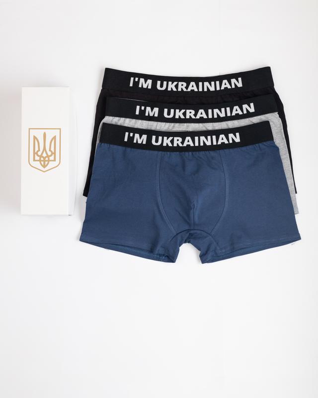 Подарочный набор боксеров трусы-шорты из 3 шт I'M Ukrainian С3152 хлопок в коробке