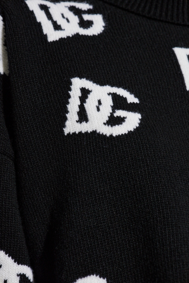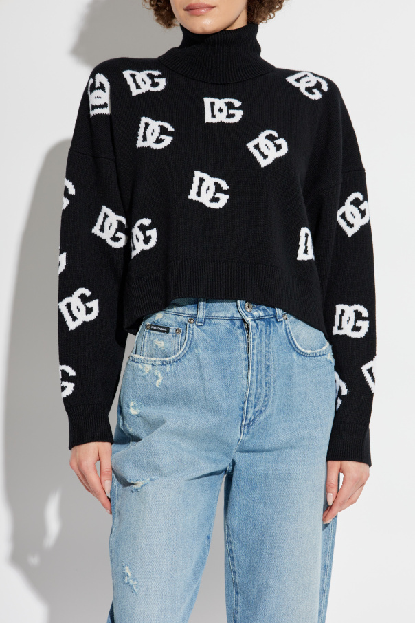Indulge in the epitome of sophistication with the Dolce & Gabbana Logo Turtleneck Sweater from our exclusive collection. This fine knitwear piece envelops you in luxurious comfort and timeless elegance, making it an essential addition to any discerning wardrobe. Crafted from 100% premium wool, this black turtleneck features a classic silhouette with a high collar that gracefully hugs the neck. The sweater's simple cut and slightly loose fit offer both style and ease of movement, ensuring you stay cozy and chic throughout the colder months. The all-over white "DG" logo pattern creates a striking contrast against the black background, adding a distinctive flair to the sweater. The logos are meticulously distributed, ensuring a sophisticated yet bold visual appeal. The sleeves are designed with a relaxed fit, providing freedom of movement, while the hem and cuffs are finished with ribbed detailing for a snug fit. The Dolce & Gabbana emblem is prominently displayed on both the front and back, affirming the luxurious nature of this garment. Perfect for elevating your winter ensemble, this turtleneck seamlessly blends comfort with high fashion. Why you should buy this product? Classic turtleneck design with a high collar for added warmth and elegance. Made from 100% premium wool for unparalleled softness and comfort. Distinctive all-over "DG" logo pattern for a bold, luxurious statement. Relaxed fit sleeves and ribbed hem and cuffs for a perfect blend of style and function. Renowned Dolce & Gabbana craftsmanship, synonymous with high fashion.