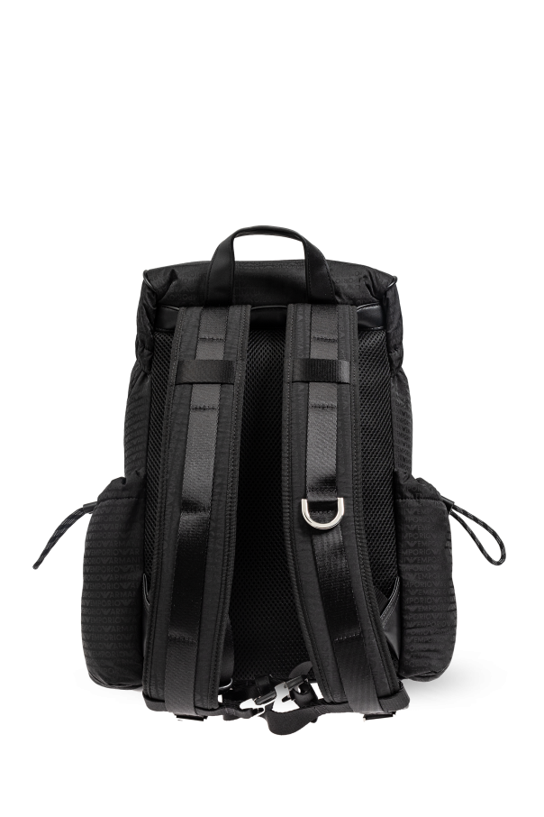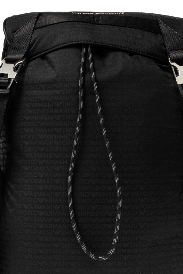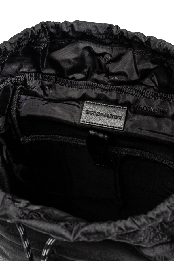 Introducing the Emporio Armani Monogram Backpack, an epitome of elegance and functionality. This rectangular backpack, adorned with a subtle "EMPORIO ARMANI" monogram, exudes a sophisticated charm that is synonymous with the brand's prestigious legacy. Crafted from premium materials, likely resilient nylon, this backpack offers durability and resistance to external elements. The main closure features a drawstring for quick and easy access, complemented by a metal logo element at the top, adding a touch of luxury. The backpack is designed for comfort and practicality, with adjustable padded shoulder straps and additional side pockets with zippers for smaller items. Inside, you'll find a well-lined interior with multiple compartments, including a laptop sleeve secured with a Velcro strap and two slip pockets, ensuring impeccable organization. The prominent "EMPORIO ARMANI" logo graces the center of the backpack and the interior, affirming its authenticity. Solid metal buckles enhance the backpack's robustness, while a rear handle provides an alternative carrying option. Elegantly finished in black, this versatile backpack is perfect for both everyday use and special occasions, embodying the luxurious yet minimalist spirit of Emporio Armani. Why Choose This Product? Exquisite and sophisticated design with Emporio Armani monogram High-quality, durable material Comfortable adjustable padded shoulder straps Ample storage with well-organized interior compartments Authentic Emporio Armani branding Versatile and elegant black color
