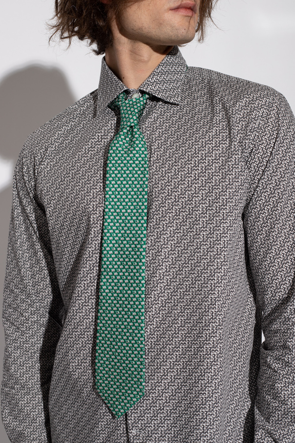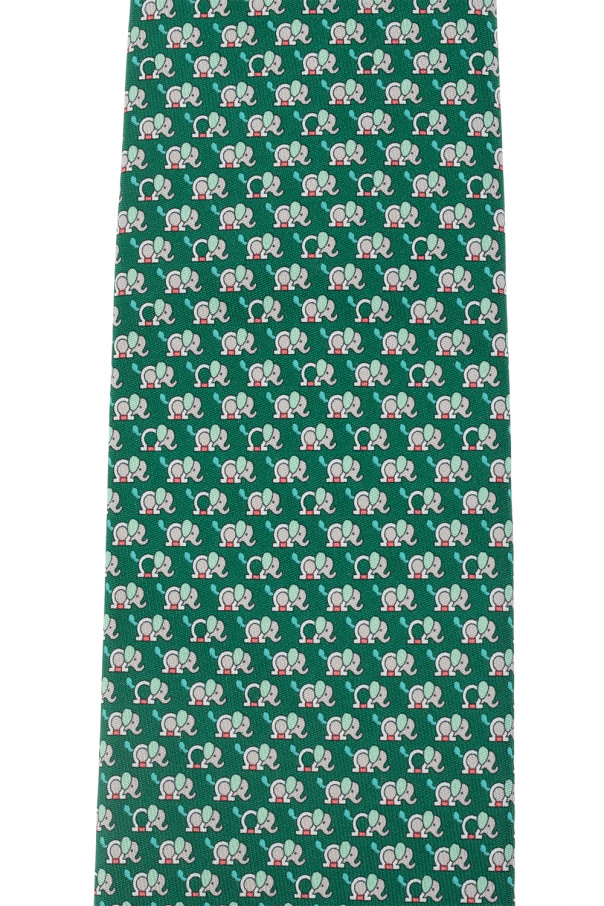 Green tie from Salvatore Ferragamo. Made of silk, this item showcases a colourful animal motif.
