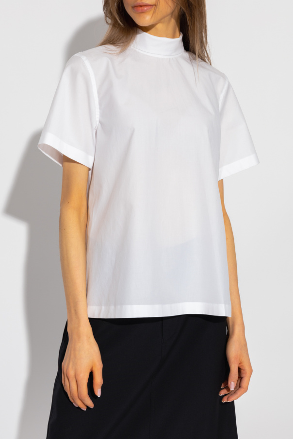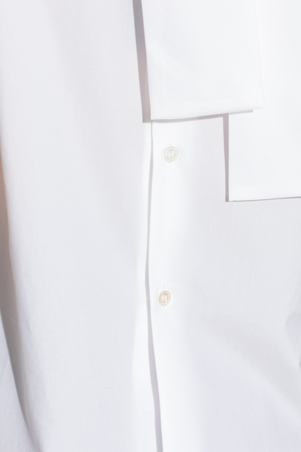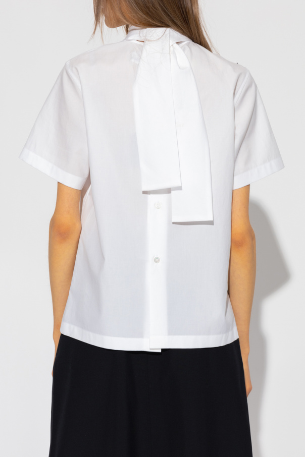 White shirt from Comme Des Garçons Ninomiya. Made of cotton with a relaxed-fitting silhouette, this style features a self-tie neck closure, button fastenings and short sleeves.
