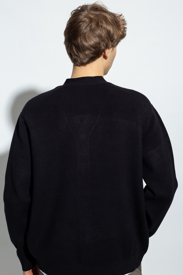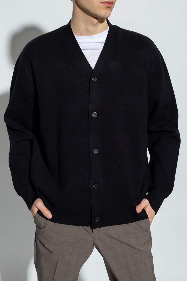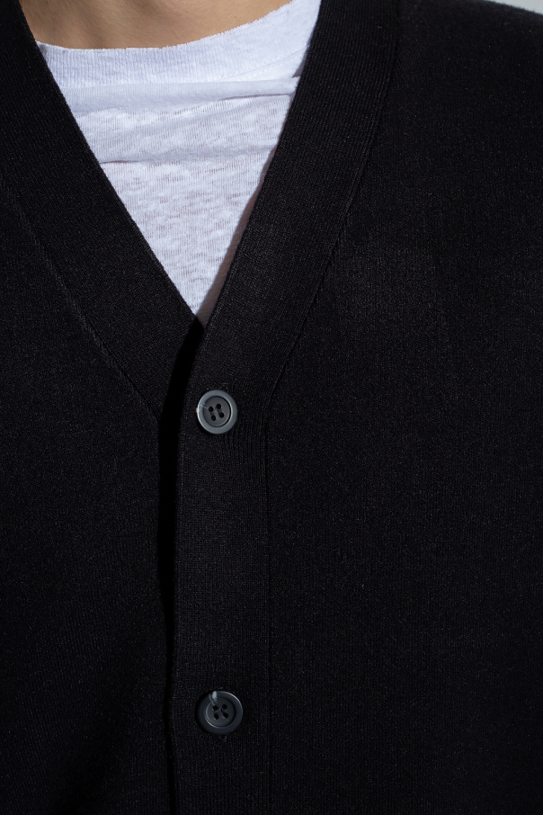 Black cardigan from Samsoe Samsoe. Fastened with buttons, this garment features ribbed trims at the V-neck, hem and cuffs.