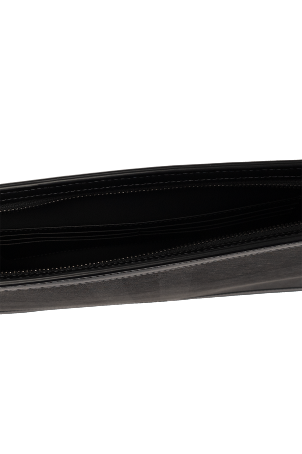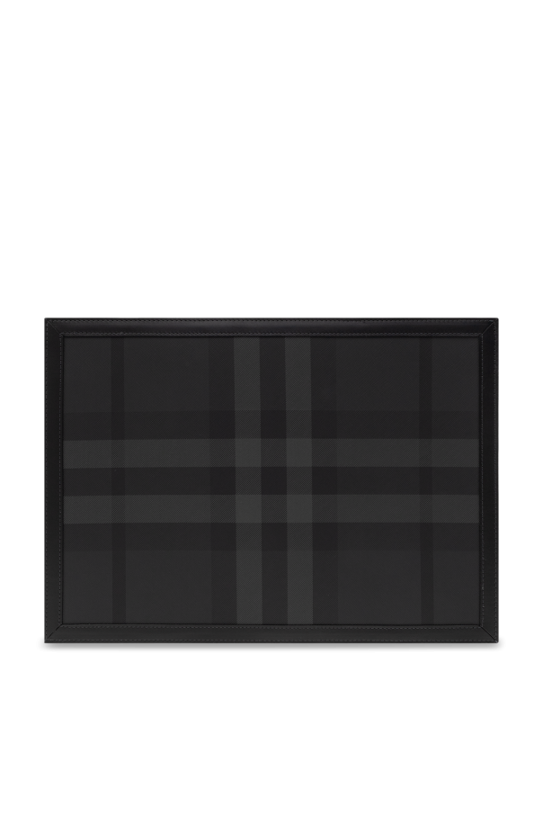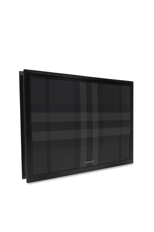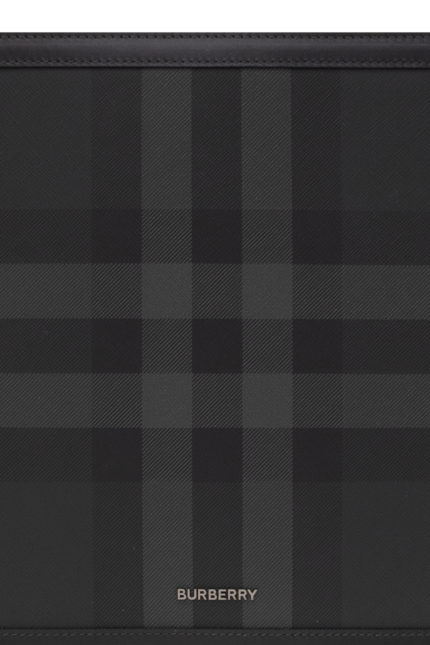 Black and grey briefcase from Burberry. Crafted from canvas with a check pattern and calf leather trims, this model is complete with a zip fastening, metal logo and one internal compartment with one slip pocket and six card slots.