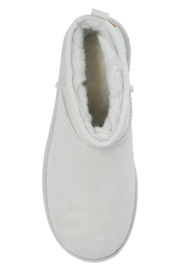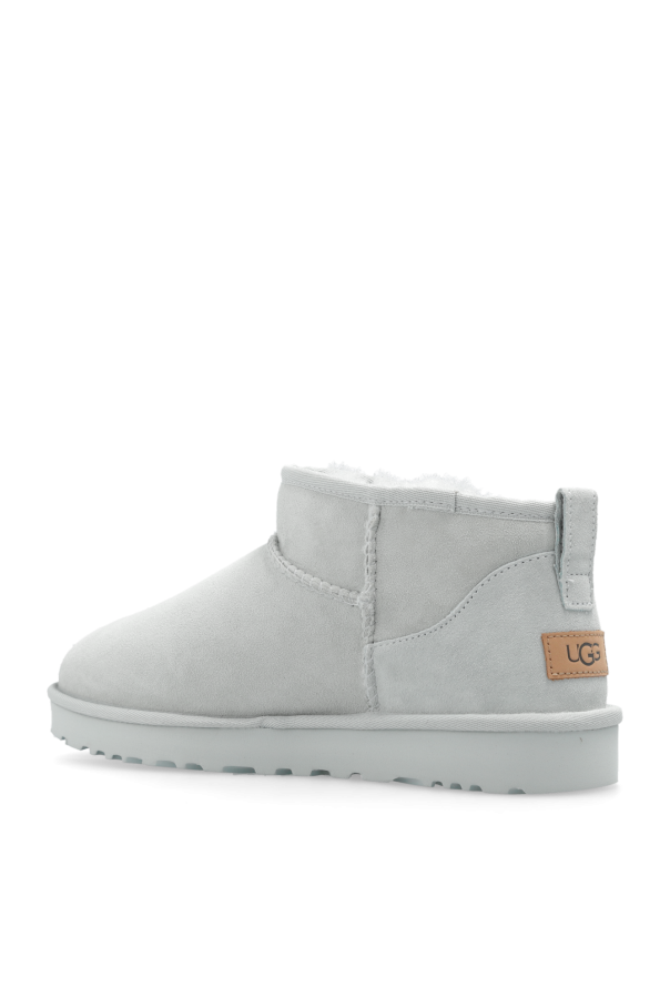 Light blue ‘Classic Ultra Mini’ snow boots from UGG. Made of Twinface sheepskin, this pair features a logo patch at the back, 100% recycled textile binding, UGGplush™ lining and light blue by UGG™ outsole crafted from EVA.