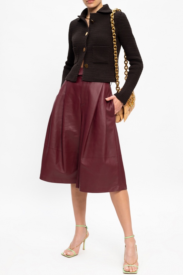 Brown cardigan from Bottega Veneta. Made of cotton, this design features gold-tone buttons and two front slip pockets.