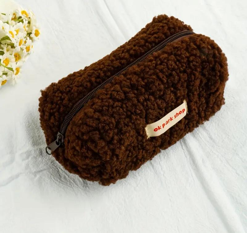 В наличии плюшевые косметички в двух цветах: кремовая и темно-коричневая