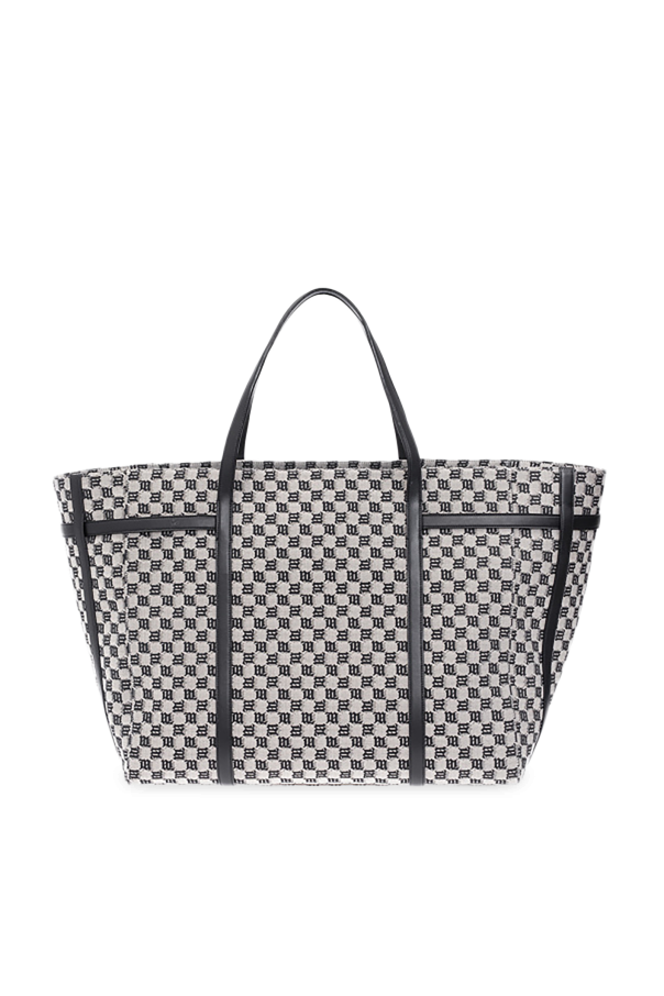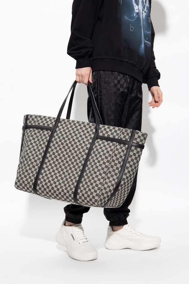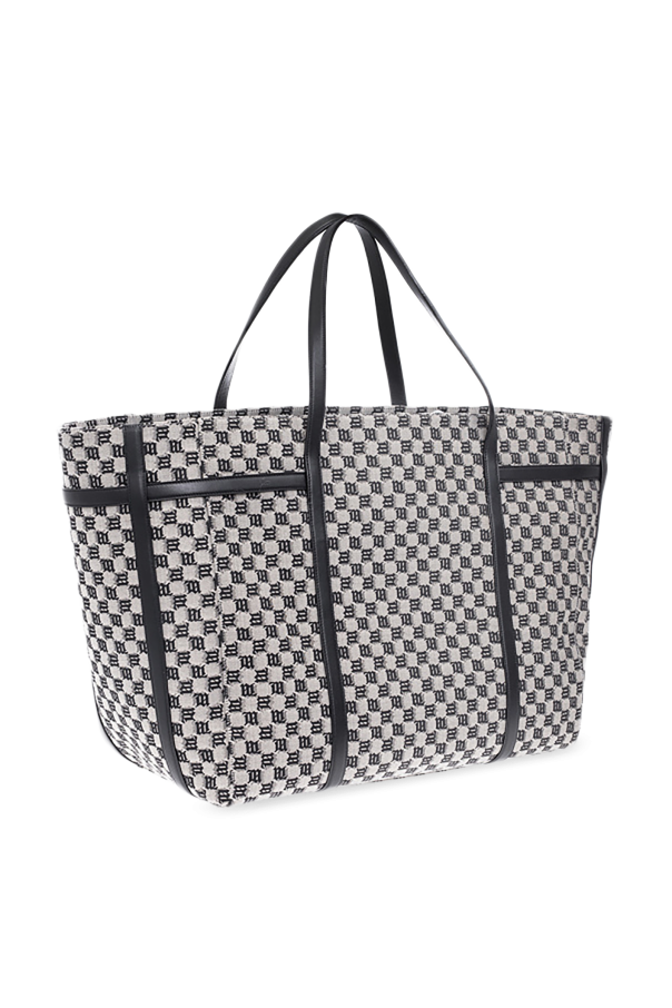 Beige and black shopper bag from MISBHV. Embellished with the brand's ‘M’ monogram pattern, this design features a zip fastening, two half-round handles, silver-tone metal hardware and one internal compartment with one slip pocket and two zip pockets.