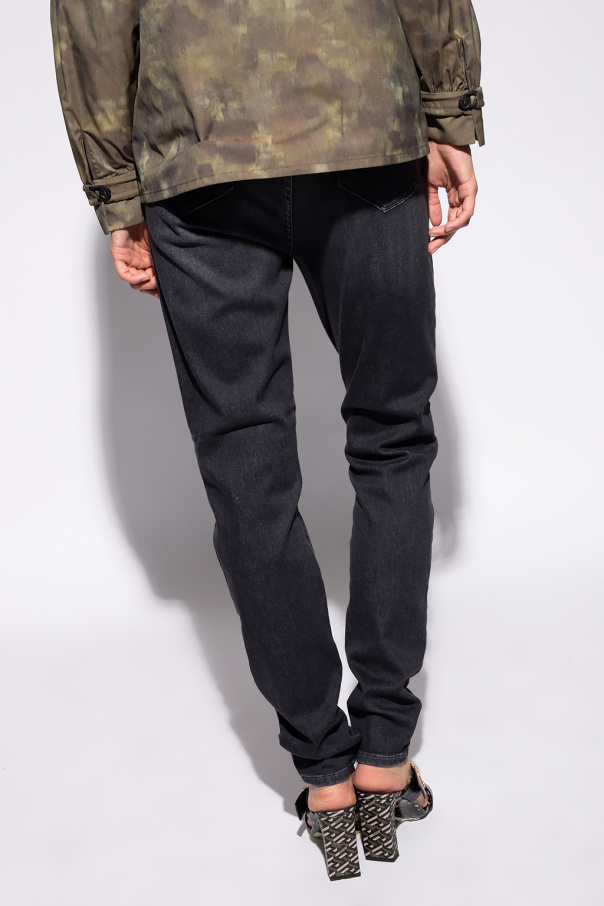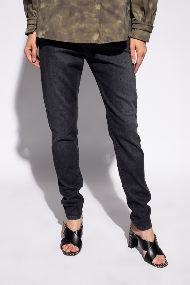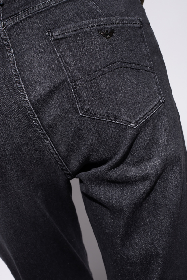 Dark grey jeans from Emporio Armani. Cut with a skinny fit, this pair features a zip fly with a button, classic five pockets and a metal logo plaque.