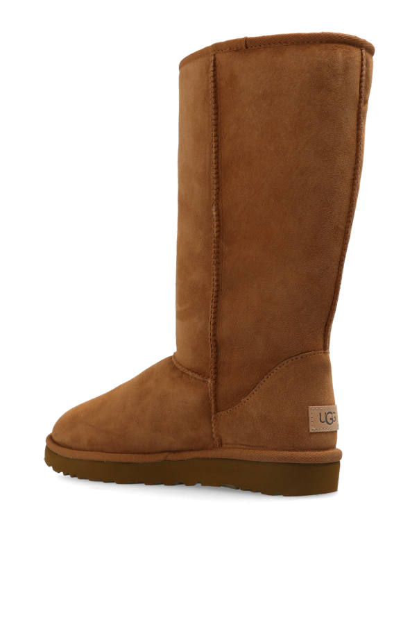 Introducing the W Classic Tall II boots by the esteemed brand UGG, a paragon of refined elegance and unparalleled comfort. Crafted with meticulous attention to detail, these boots epitomize sophistication, making them an essential addition to any discerning wardrobe. The boots feature a classic, streamlined shape with a long, straight shaft that reaches just below the knee. The design is minimalist, with a uniform suede exterior that exudes a soft and elegant allure. The interior is luxuriously lined with plush, warm fur, ensuring your feet stay cozy in the colder months. A small brand logo patch adorns the heel, a subtle nod to the brand's heritage. The durable rubber outsole provides excellent traction and comfort, making these boots as practical as they are stylish. The rich brown hue is both warm and versatile, ideal for autumn and winter ensembles. Why Buy This Product? Timeless Design: Classic shape and minimalist aesthetic. Premium Materials: Suede exterior and fur-lined interior for ultimate comfort. Brand Heritage: Emblematic logo patch signifies quality and tradition. Practicality: Rubber outsole ensures good grip and comfort. Versatile Color: Warm brown shade complements a variety of outfits.