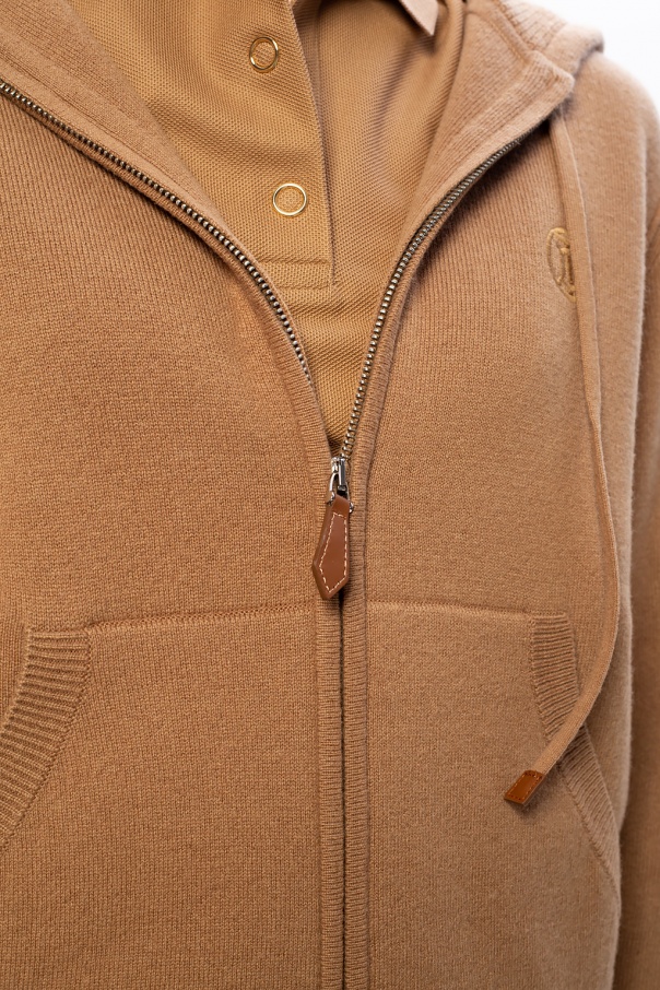 Beige sweatshirt with a drawcord-adjustable hood from Burberry. Crafted from soft cashmere, this hoodie fastens via a zip and showcases an embroidered logo, two frontal pockets and a ribbed bottom hem and cuffs.
