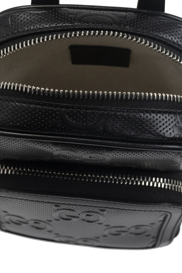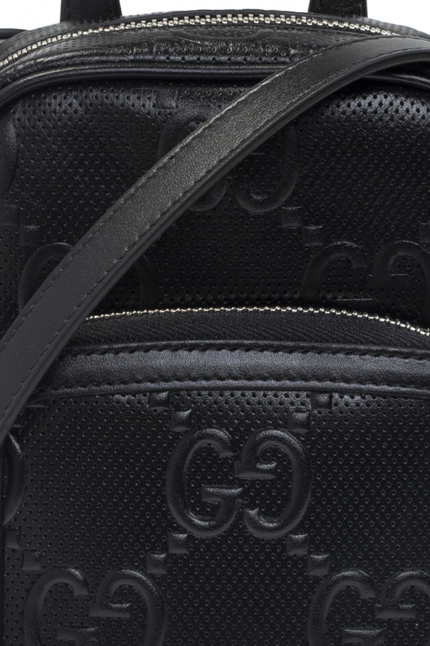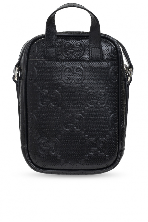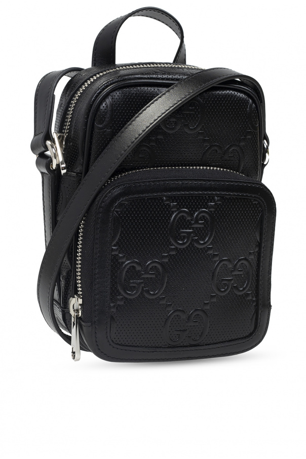 Black shoulder bag from Gucci. Crafted from logo-embossed calf leather, this design features two zip pockets, a half-round handle, adjustable strap and silver-tone metal hardware.