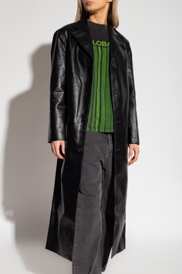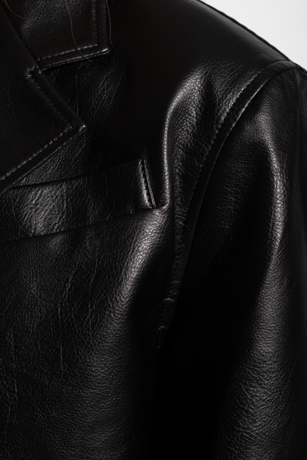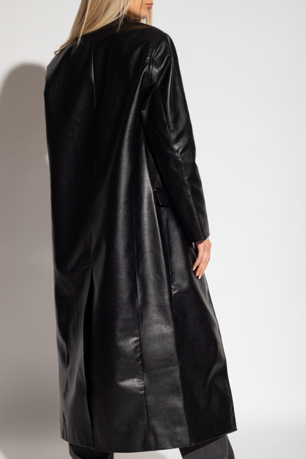 Black ‘Morris’ coat from Eytys. Crafted from faux-leather, this style fastens via buttons and features notch lapels, one slip pocket, two flapped pockets and a single back vent.