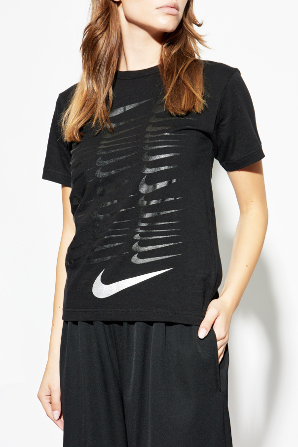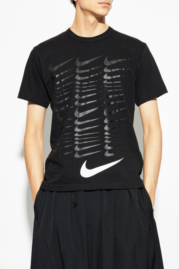 Presenting the exclusive Nike Cotton T-Shirt, a masterpiece of contemporary fashion meticulously crafted by the renowned Comme des Garçons Black. This t-shirt embodies a perfect fusion of modernity and elegance, making it an indispensable addition to any wardrobe. Constructed from premium cotton, this t-shirt guarantees unparalleled comfort and breathability. Its classic, straight cut with short sleeves and a round neckline offers a timeless silhouette suitable for any occasion. The dominant black color, accentuated by a unique pattern of multiple Nike logos in varying shades of black and a single white logo at the bottom, creates a dynamic and layered visual effect that exudes sophistication. Designed to be unisex, this t-shirt is ideal for both men and women, as showcased by the models in the accompanying images. The intricate print quality and meticulous attention to detail highlight the superior craftsmanship of this collaboration between Nike and Comme des Garçons Black. Why Choose This Product? Timeless and versatile design with a classic cut. Premium cotton material ensures maximum comfort and breathability. Unique and dynamic logo pattern adds a touch of sophistication. Unisex design suitable for both men and women. Exquisite collaboration between Nike and Comme des Garçons Black.