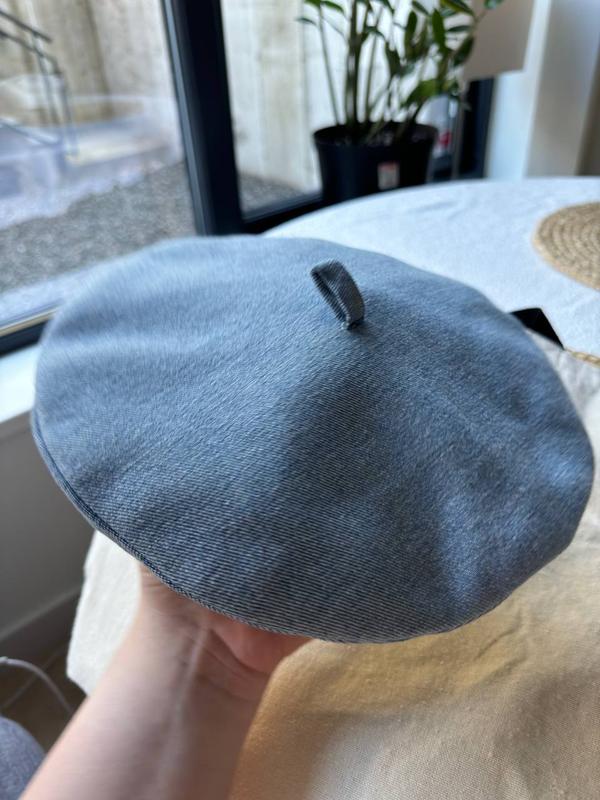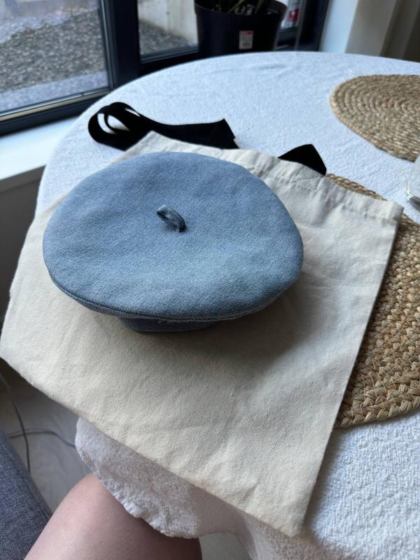Структурований берет з деніму. Підкладка. Бавовняний шопер в комплекті.