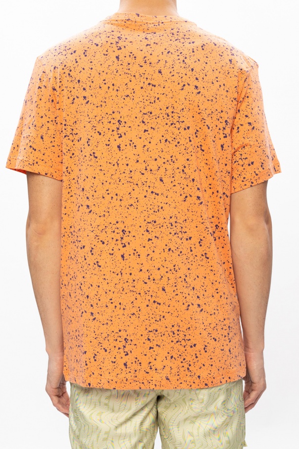 Orange T-shirt from Nike. Crafted from cotton, this item features a round neck and short sleeves and is enriched by a navy pattern and a logo pint in yellow, purple and orange.