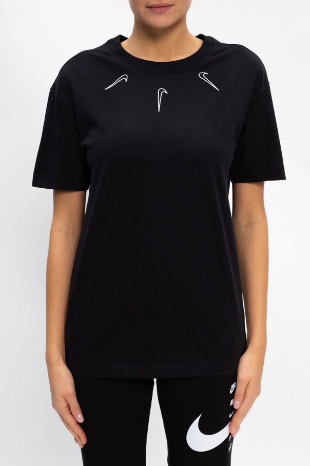 Black crewneck T-shirt from Nike. Crafted from cotton, this design is decorated with a white logo embroidery.
