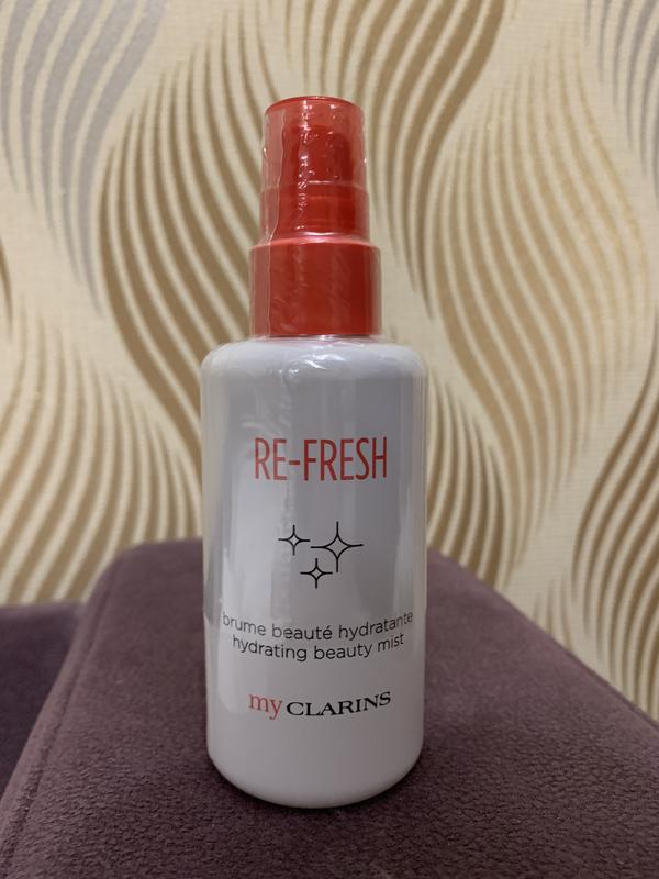 My Clarins Re-Fresh Hydrating Beauty Mist – увлажняющий спрей с восхитительным цветочным ароматом. Легкое средство освежает, тонизирует и витаминизирует кожу, придает ей сияние.