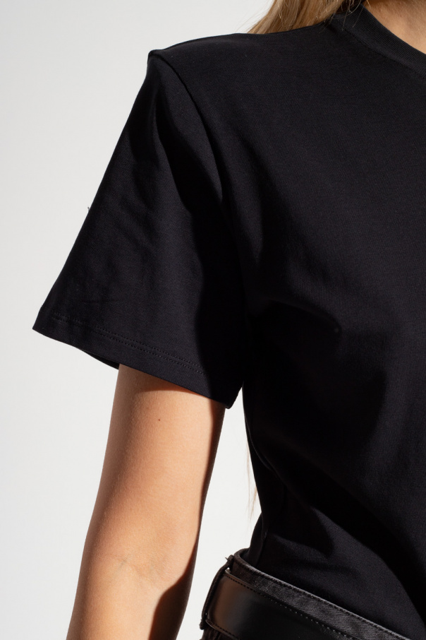 Black ‘Clayre’ body from Iro. Made of cotton. Fastened with snaps, this garment features a loose-fitting silhouette with a ribbed crew neck and short sleeves with detachable shoulder pads.