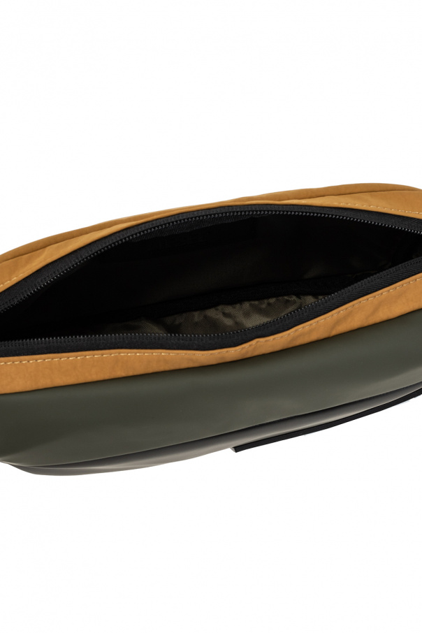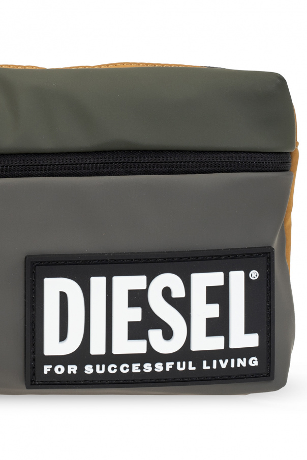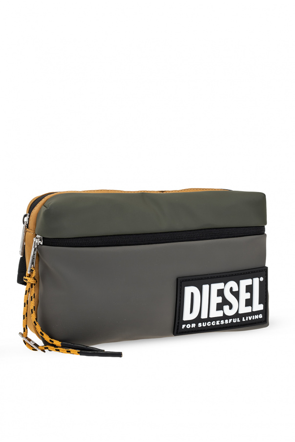 Grey, green and brown ‘Beltyo’ belt bag from Diesel. Accentuated with a rubber logo patch on the front, this item features a zip fastening, an external zip pocket, an adjustable strap and one internal compartment with a zip pocket.