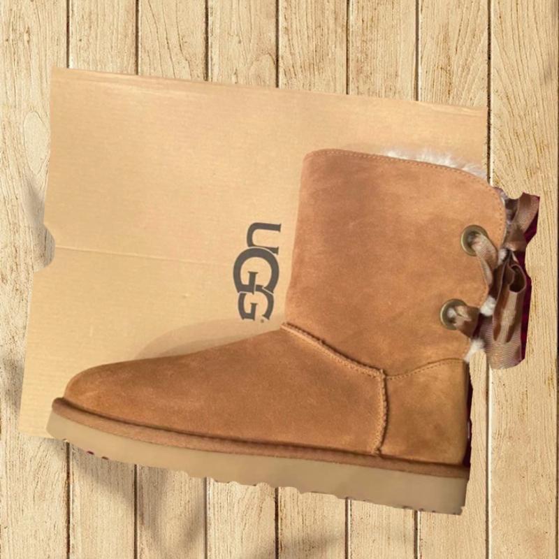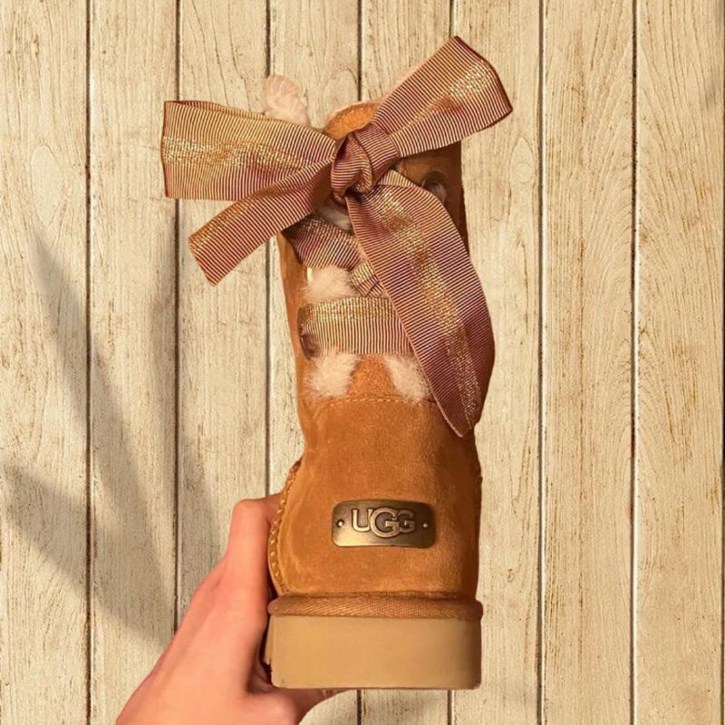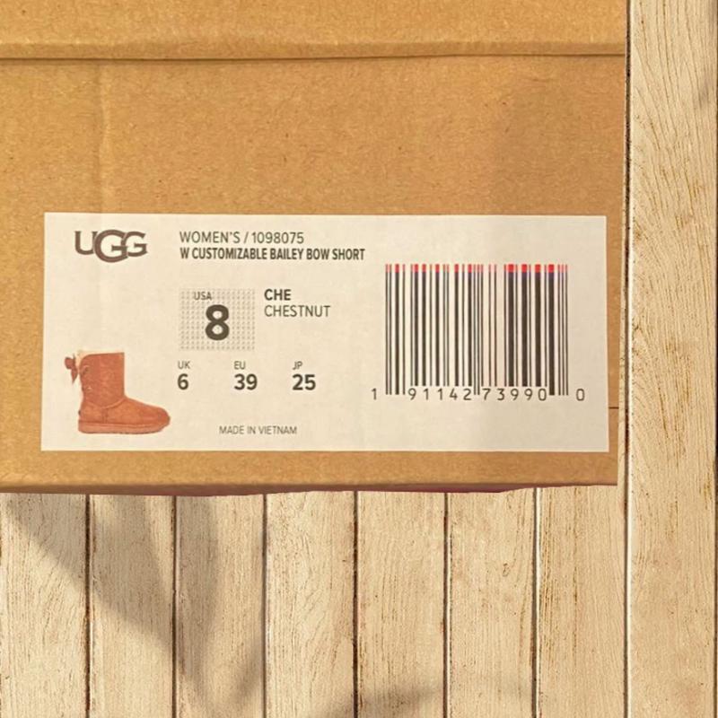 - Шкіряний лейбл на п'яті з тисненим логотипом UGG®.Виріб містить натуральне хутро вівці або ягняти. Хутро може бути отримане з Австралії, Ірландії, Великобританії чи США. Він був штучно забарвлений та оброблений. Зроблено у В'єтнамі.