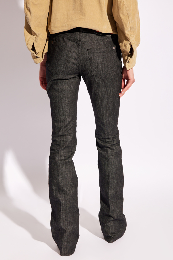 Introducing the epitome of sartorial elegance: Dsquared2 'Flare' Jeans. Crafted from a robust blend of cotton and elastane, these jeans exemplify the perfect fusion of comfort and durability. The black hue, enriched with subtly distressed details, bestows an effortlessly chic, vintage appeal. Their distinctive flare style, iconic of the 'Flare' design, marries classic sensibility with a contemporary edge. Each pair is meticulously finished with high-quality stitching, ensuring longevity and resilience. The presence of the iconic red and white DSQUARED2 logo near the zip-fly is a testament to unmatched craftsmanship and attention to detail. Metal hardware on the zip and button closure accentuates the premium quality of these jeans. The design’s exceptional fit and flare silhouette are highlighted in the way these jeans gracefully contour the body, while the strategic placement of the five-pocket design enhances functionality without sacrificing style. The unique wash and dye technique applied to the denim not only accentuates the jeans' aesthetic appeal but also contributes to their distinct character. Why purchase this product? Vintage Charm: The slight distressing adds a touch of age and sophistication. Exemplary Quality: Premium denim with durable stitching ensures lasting wear. Signature Detailing: The DSQUARED2 logo adds an exclusive brand identity. Flattering Fit: Designed to flatter the silhouette while providing comfort and style. Functional Elegance: The blend of style with practicality, featuring five versatile pockets.