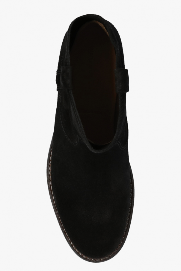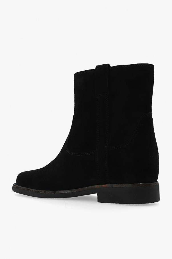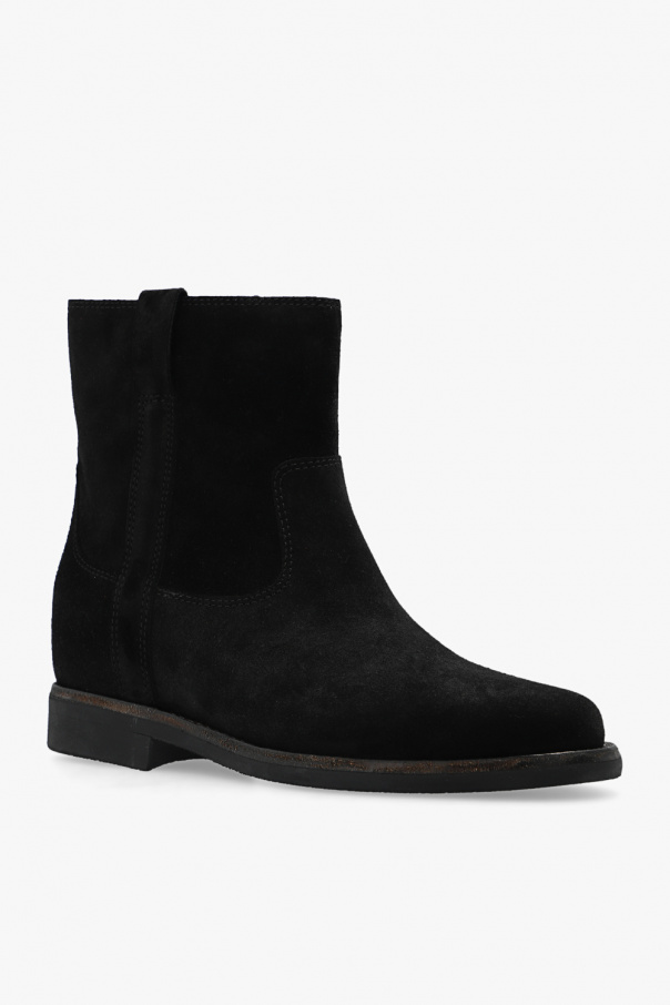 Black ‘Susee’ ankle boots from Isabel Marant. Made from suede with a slip-on silhouette, this model sits on a black and brown rubber sole and features a round toe silhouette.
