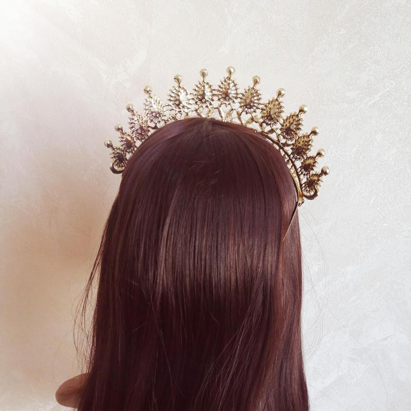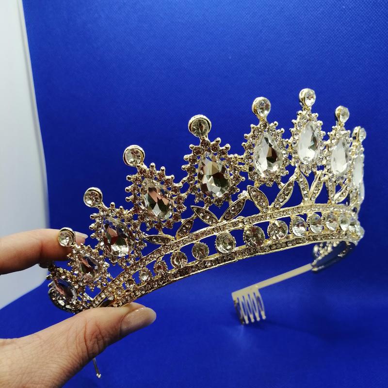 Роскошная диадема для праздника, фотосессии и других торжеств под золото с прозрачными камнями. В комплект можно подобрать серьги, браслет, набор колье и серьги и другую бижутерию, смотрите дополнительно в моем профиле. ИЗМЕРЕНИЯ: высота 6,5 см, ширина декоративной части с камнями 28 см (всего по обручу 40 см). КРЕПЛЕНИЕ: на обруче с расческами