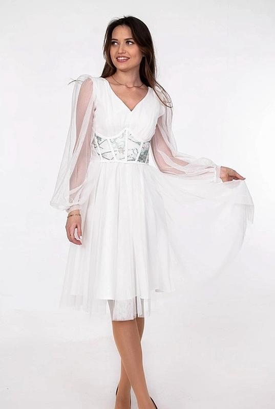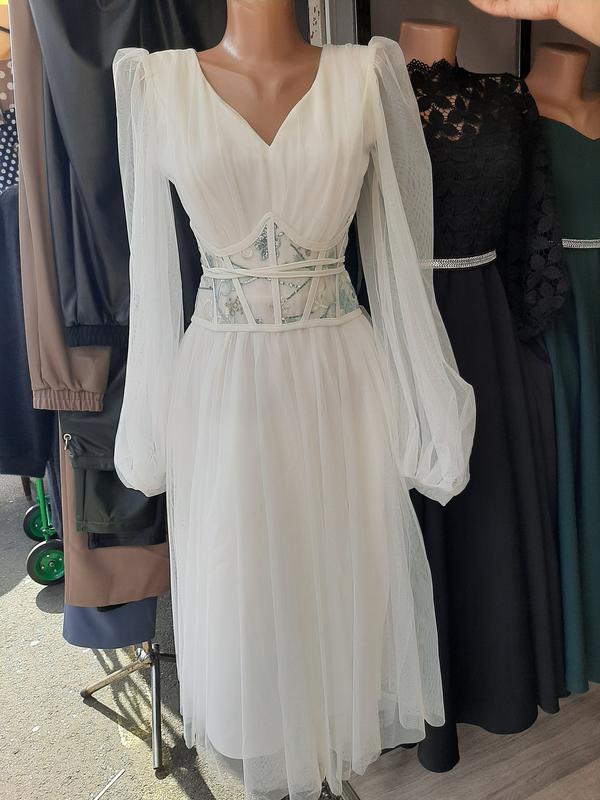Женское нарядное платье с корсетом и пышной юбкой для особых моментов и мероприятий .Корсет украшенный изысканной вышивкой, придает элегантности и стиля ,его можно регулровать с помощью завязок . Верх и рукава платья из евро-сетки ,которая добавляет легкости и тонкости образу. Рукав фонарик добавляет изысканности и неповторимости всему образу. Платье сочетается с босоножками и туфлями на каблуке, выглядит легко и изящно. Идеальный вариант для любого праздника.Стан: НовийКолір:- Білий