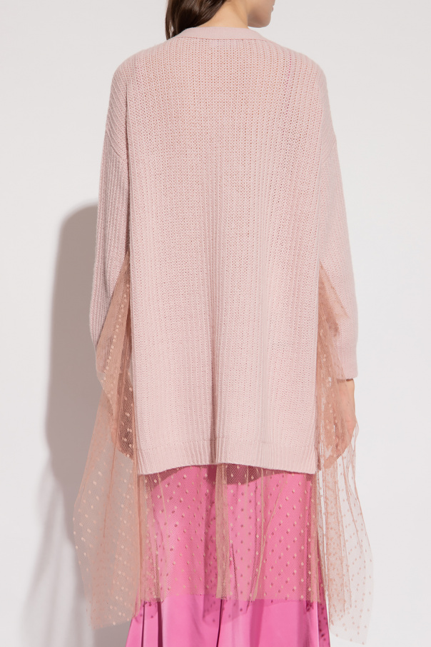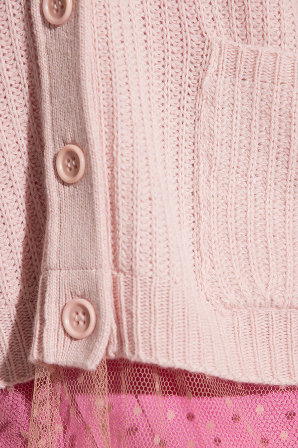 Pink cardigan from Red Valentino. Fastened with buttons, this V-neck design features a star pattern, two slip pockets and ribbed trims at the neck, hem and cuffs.