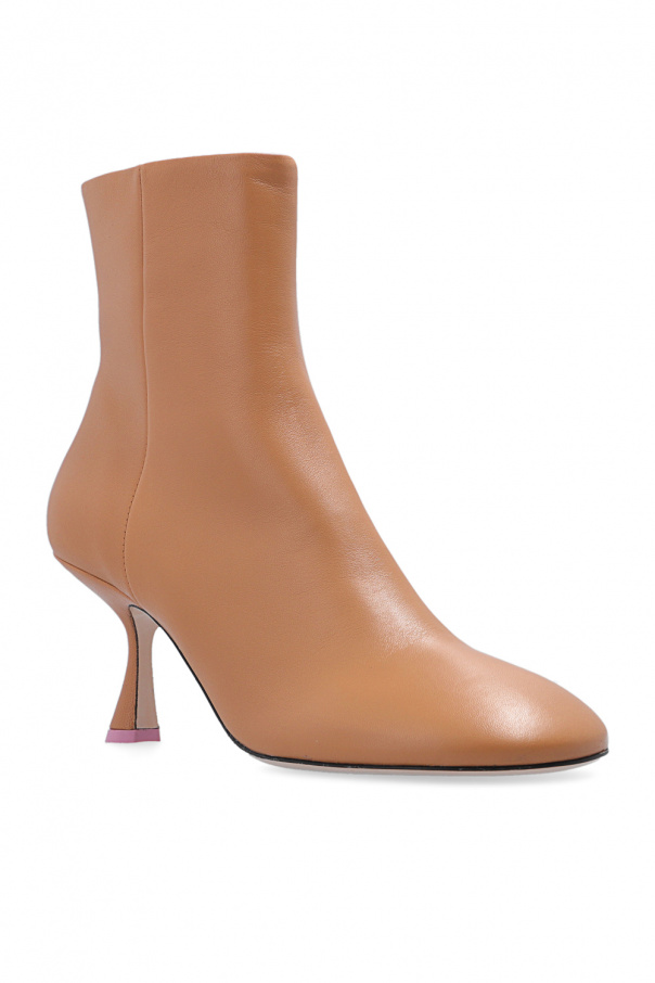 Beige ‘Marine’ heeled ankle boots from Wandler. Made of lamb leather, this model features a round toe, a side zip fastening and a light beige leather sole.