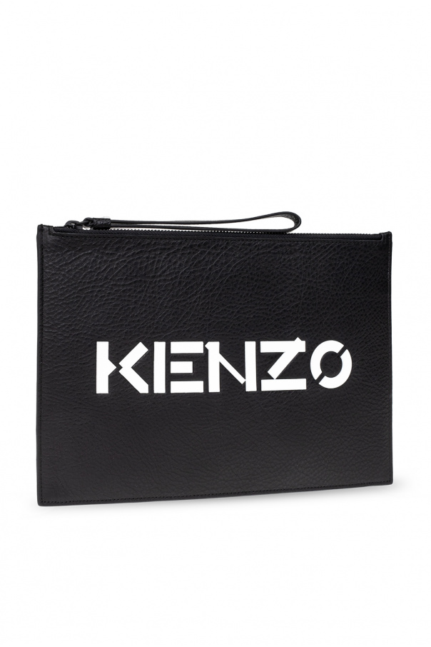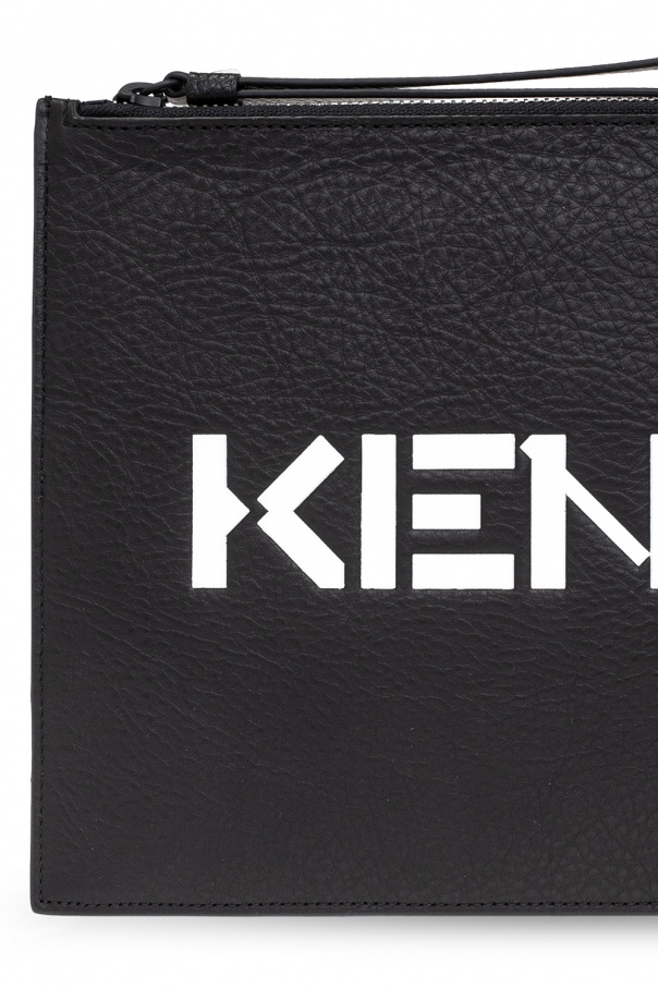 Black handbag from Kenzo. Made of leather, this model features a zip with a wrist strap, white rubber logo and one internal compartment with one card slot.