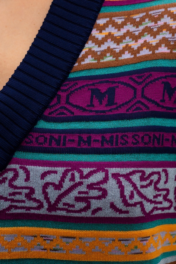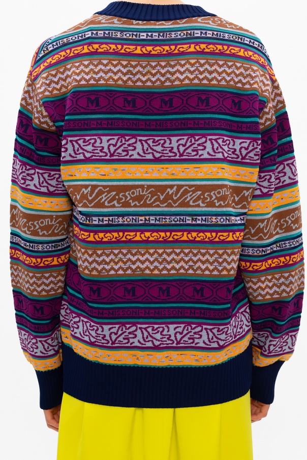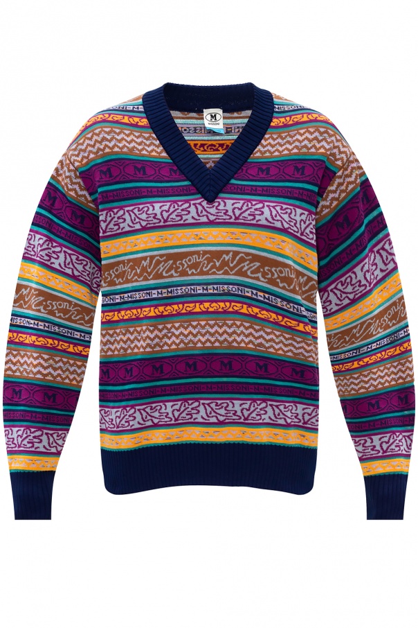 Multicoloured crewneck sweater from M Missoni. Knitted from a wool and cotton blend with an all-over pattern, this item is complete with a ribbed bottom hem and cuffs in navy blue.