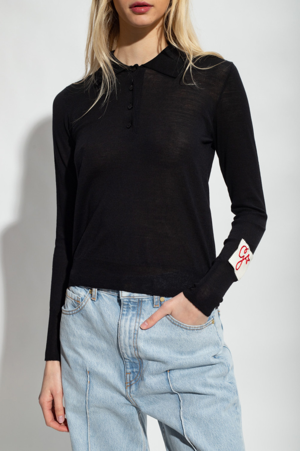 Black polo shirt with long sleeves from Golden Goose. Made of cotton, this style fastens with buttons and features a logo patch and elasticized trims on the collar, bottom hem and cuffs.