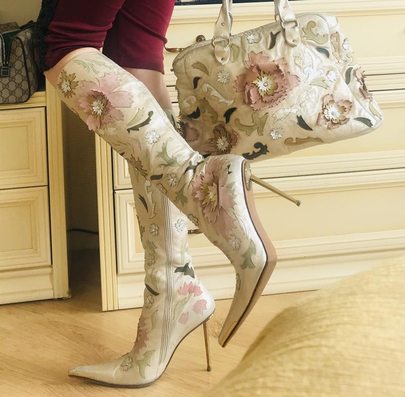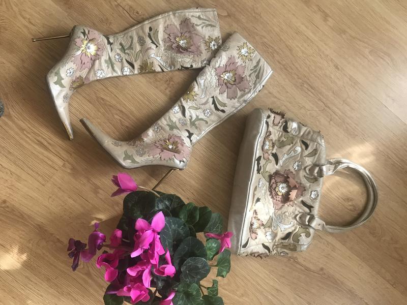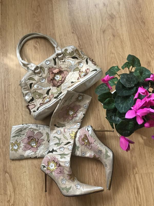 Шкіряні чоботи на металическом підборах Все квіточки аплікація Ручна робота Сумка з атласною підкладкою - два відділення, одне з замочком, всередині кишеня і кишеня з замочком і зовні кишеньку з замочком В єдиному екземплярі В них ви точно не залишитеся непоміченою !! Відправляю