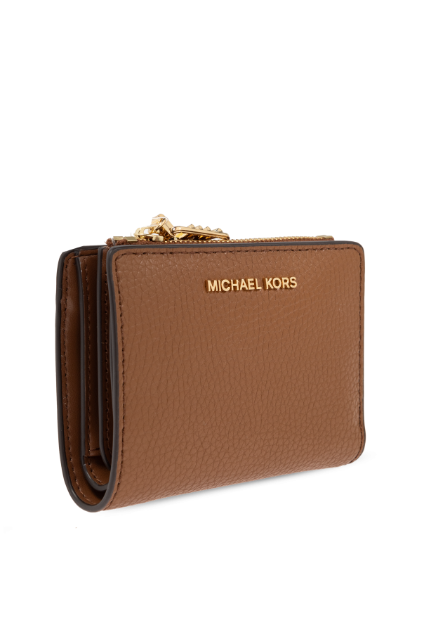 Introducing the Empire Wallet by the renowned designer Michael Michael Kors, a beacon of elegance for the discerning fashion aficionado. Crafted from the finest grain leather, this luxurious accessory epitomizes sophistication with its sleek, rectangular silhouette and impeccably defined edges. The uniform rich brown hue lends a timeless allure, while the absence of patterns accentuates the natural beauty of the leather's texture. The wallet's exterior is adorned with a distinct, gold embossed designer logo, signaling elite craftsmanship and attention to detail. A complementary gold zipper closure not only secures your valuables but adds a touch of opulence to the overall design. Inside, the Empire Wallet is ingeniously organized with compartments for credit cards and documents, a dedicated bill pocket, a coin pocket with zipper, and six card slots, blending functionality with elegance. Why Purchase This Product? Exquisite Material: 100% premium grain leather exterior and interior material ensure durability and a luxurious feel. Functional Design: Efficient internal organization caters to all your essentials with ease. Luxurious Aesthetics: Gold accents and the iconic designer logo elevate the wallet's elegance. Versatile Elegance: The timeless brown color and refined design make it a perfect accessory for any ensemble.