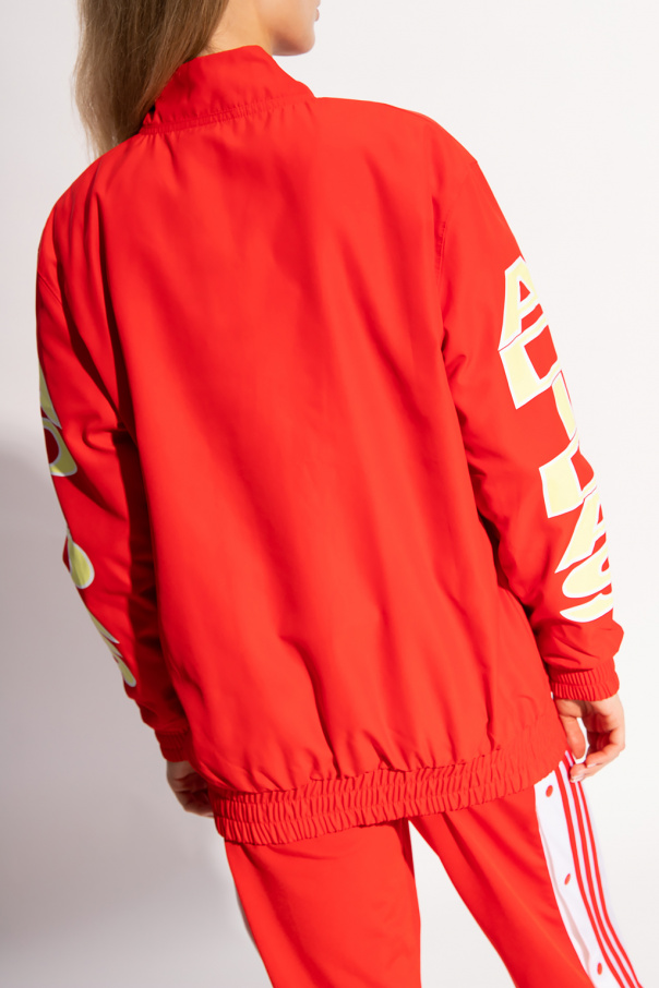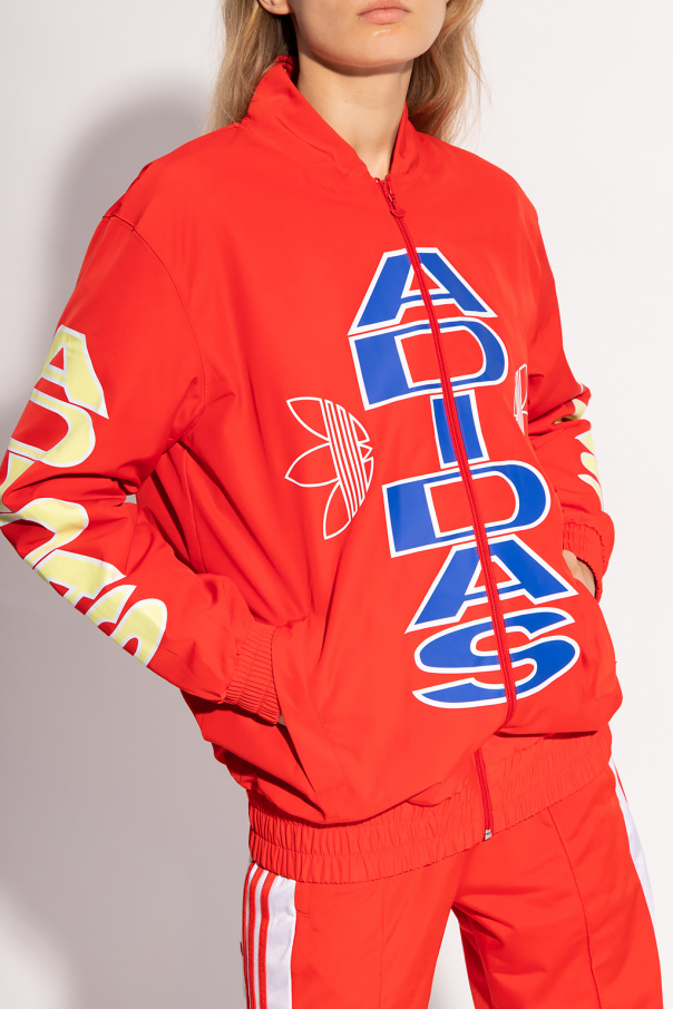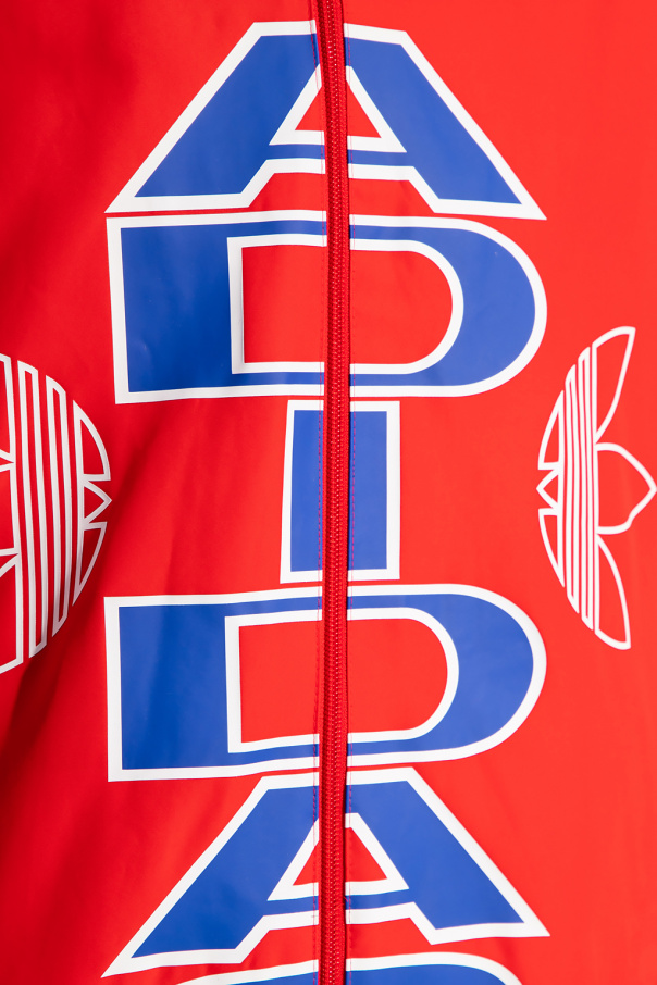 Red jacket from ADIDAS Originals. Made of wind- and waterproof fabric with the WIND.RDY technology, this garment features a zip fastening, multicolored logo print, two zip pockets and ribbed trims.