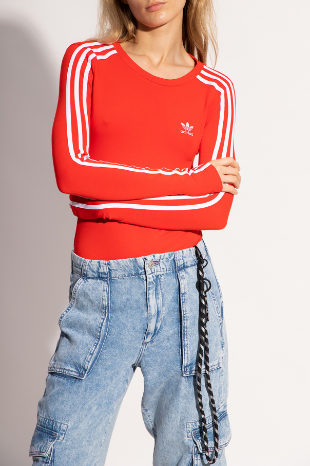 Red body from ADIDAS Originals, the ‘Better Cotton Initiative’ line. Made of cotton produced in sustainable crops, this garment features a snap closure, white logo embroidery, round neck and long sleeves with the iconic three stripes.